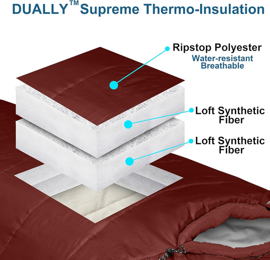 0 Degree Sleeping Bags XL (Side-sleeper Friendly) - Burgundy Wine